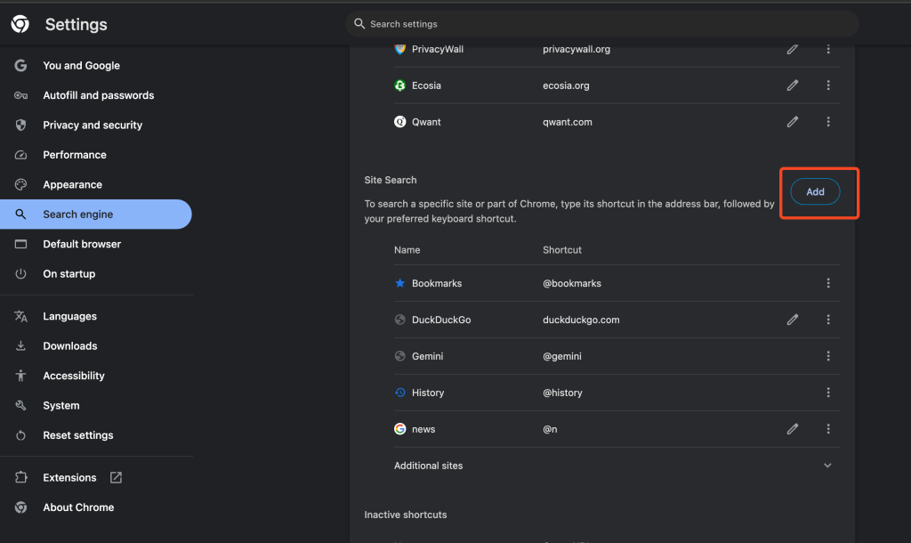 Add a new Site Search